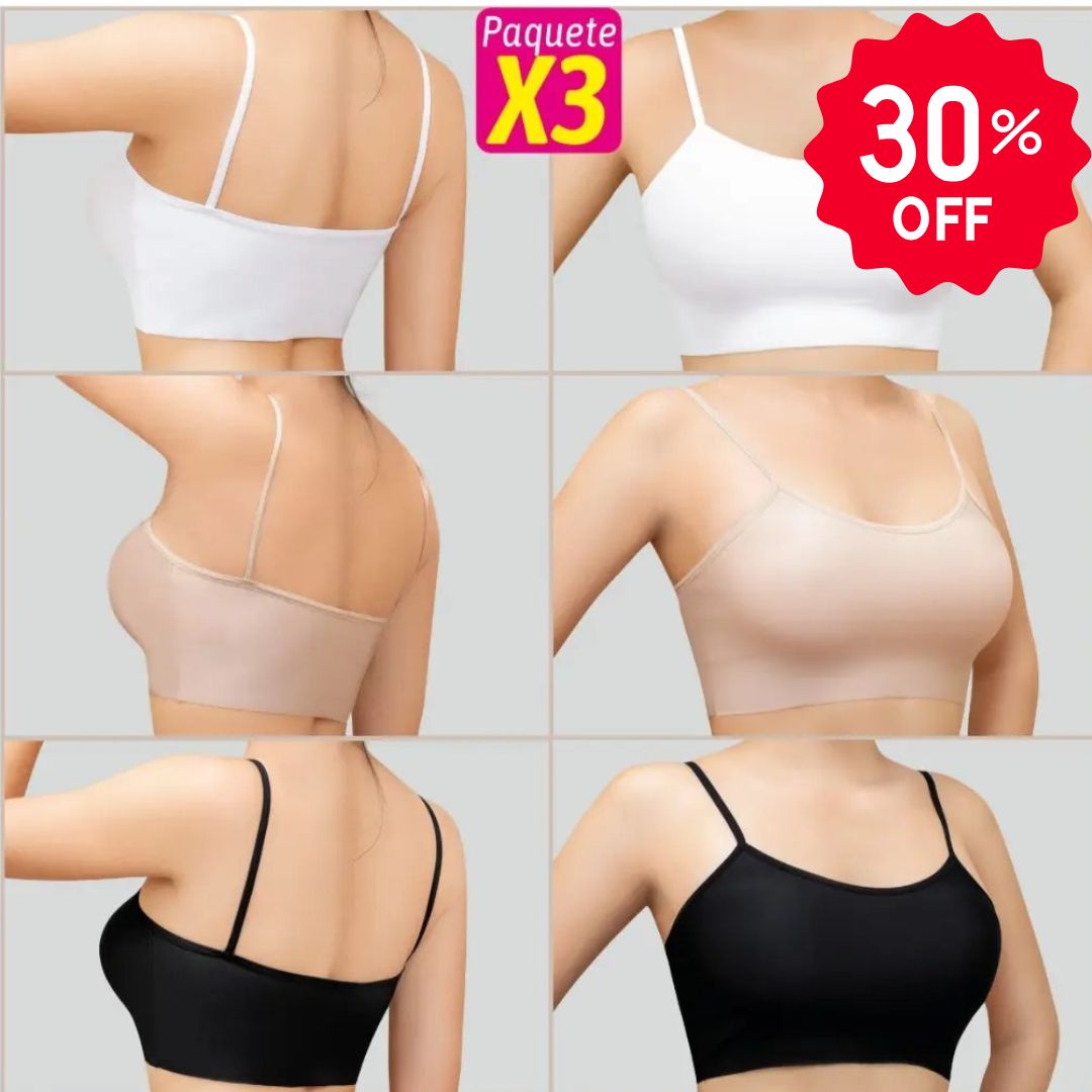 Descubre la libertad de movimiento con nuestro Top Invisible en presentación de pack x3. Diseñados sin costuras visibles, elásticos ni estructuras rígidas, estos bralettes se adaptan perfectamente a tu cuerpo como una segunda piel. Ideales para el uso diario o para combinar con tus prendas favoritas sin preocuparte por marcas incómodas.